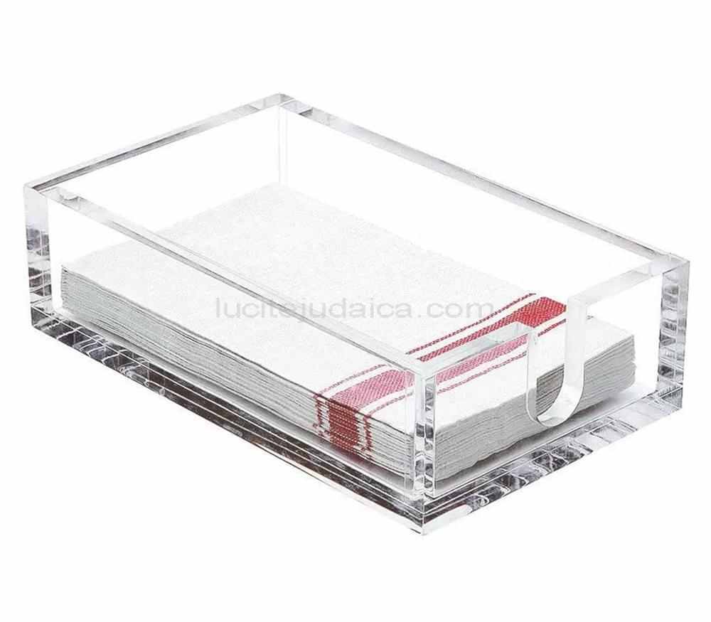 Designed to accommodate standard-sized guest napkins, this holder stand not only keeps your napkins organized but also adds a touch of sophistication to your dining experience. The crystal-clear acrylic material offers a contemporary aesthetic, effortlessly complementing various decor styles, from modern minimalism to classic elegance.
